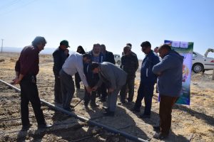 در بخش بعدی، اعضای کاروان از مزرعه جو تیپ شرکت سهامی زراعی بازدید کردند. کارشناسان حاضر در این بازدید درباره اهمیت حفظ منابع آب و خاک و استفاده از روشهای نوین آبیاری نکات فنی را بهصورت تئوری و عملی برای حاضران تشریح کردند.